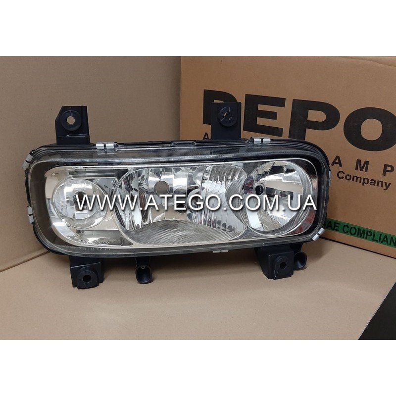 Фара правая Mercedes Atego II (с гладким стеклом, ручным управлением). DEPO