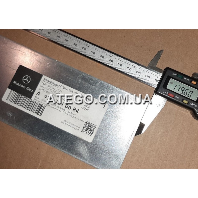 Межлистовая металлическая вкладка рессоры Mercedes Atego 9703210684 (180x78x2). Оригинал
