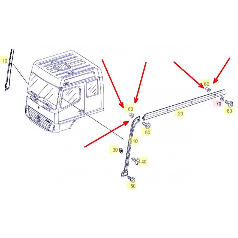 Боковое уплотнение под металлическую накладку кабины Mercedes Atego под...